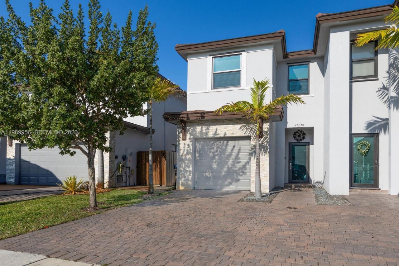 Stunning 3-bedroom, 2.5-bath twin home offering the perfect blend of style, space, and comfort! This beautifully maintained property features high ceilings and abundant natural light throughout, creating a bright and inviting atmosphere. The modern kitchen boasts a huge island, perfect for entertaining, along with ample cabinetry and modern finishes. Enjoy tile flooring on the main level and wood laminate upstairs, along with plenty of closet space for all your storage needs. Step outside to a s...Stunning 3-bedroom, 2.5-bath twin home offering the perfect blend of style, space, and comfort! This beautifully maintained property features high ceilings and abundant natural light throughout, creating a bright and inviting atmosphere. The modern kitchen boasts a huge island, perfect for entertaining, along with ample cabinetry and modern finishes. Enjoy tile flooring on the main level and wood laminate upstairs, along with plenty of closet space for all your storage needs. Step outside to a spacious fenced backyard complete with a pergola and stamped concrete terrace?ideal for relaxing and hosting gatherings. Additional highlights include impact windows and doors, a one car garage, resort style community amenities, and a prime location close to major highways, top-rated schools, shopping, and dining. A true must-see!
